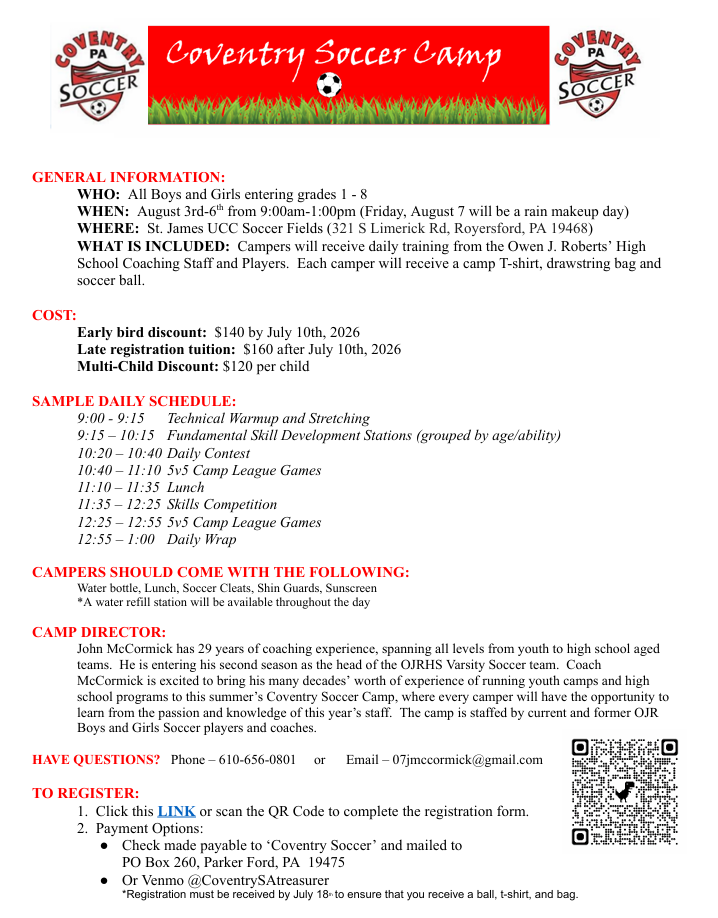 Coventry Summer Camp with OJR HS Boys Wildcat Soccer
